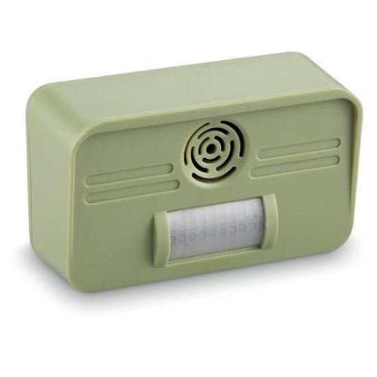 - Produces a sound that is very unpleasant to cats, dogs, and even raccoons but inaudible to the human ear- Switches off automatically when the animal has left the area for extended battery life- Easy to install- Weather resistant- Powered by 6AA batteries or 9VDC adapter (not included)- Built in test button and LED indicator- Patented design - Area Covered: Up to 295 square feet - Audio Frequency: 18kHz-24kHz with up to 90dB volume